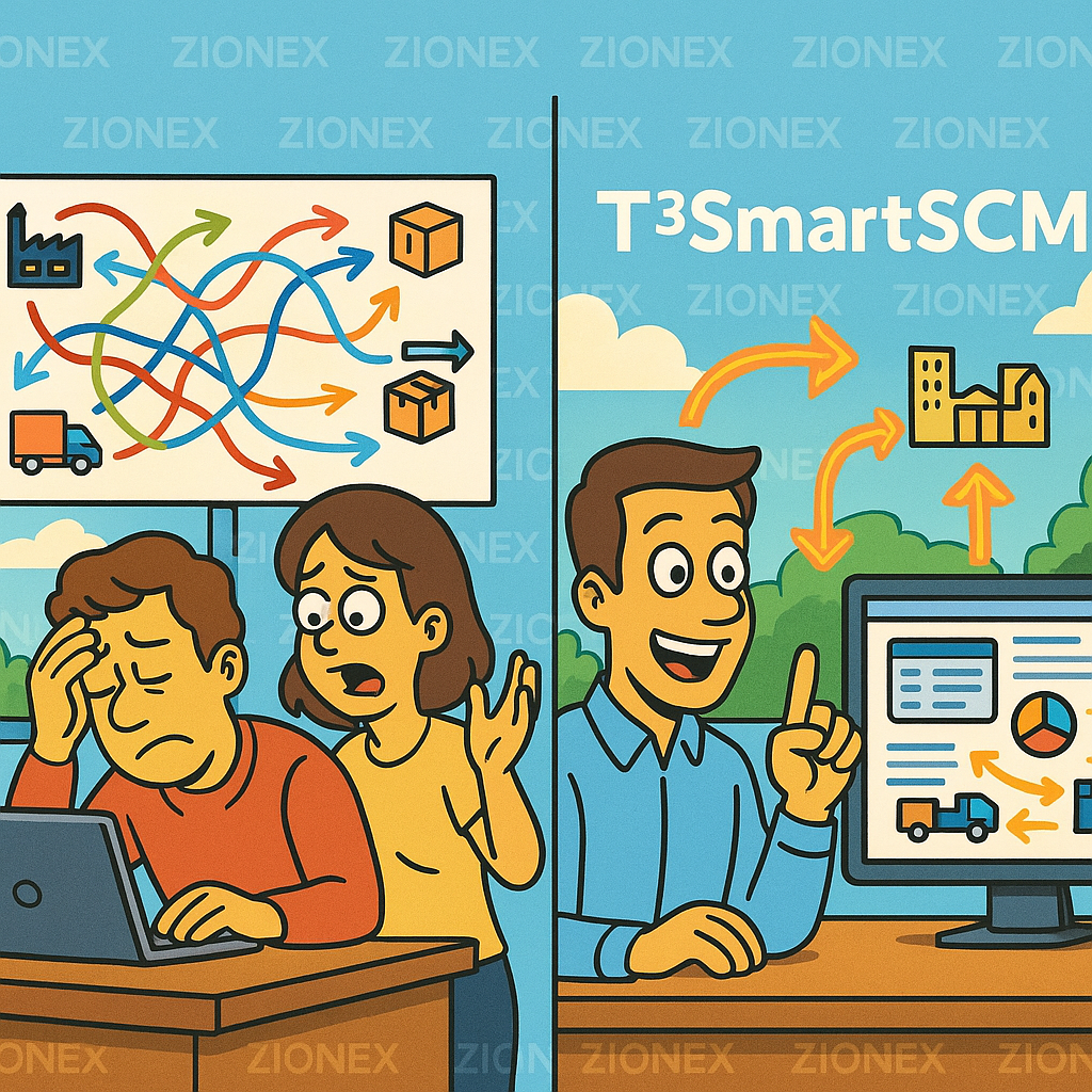ZIONEX는 기업의 규모와 특성에 맞는 다양한 SCM 솔루션을 제공합니다. 특히 T³SmartSCM과 PlanNEL은 최신 AI 기술로 무장하여 많은 기업의 사랑을 받고 있습니다.